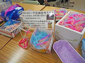 「ビー玉、変身キューブ、パズルで遊ぼう!」と題して、手作りしながらふと数学的発見をしていただけたらと思い展示しました。